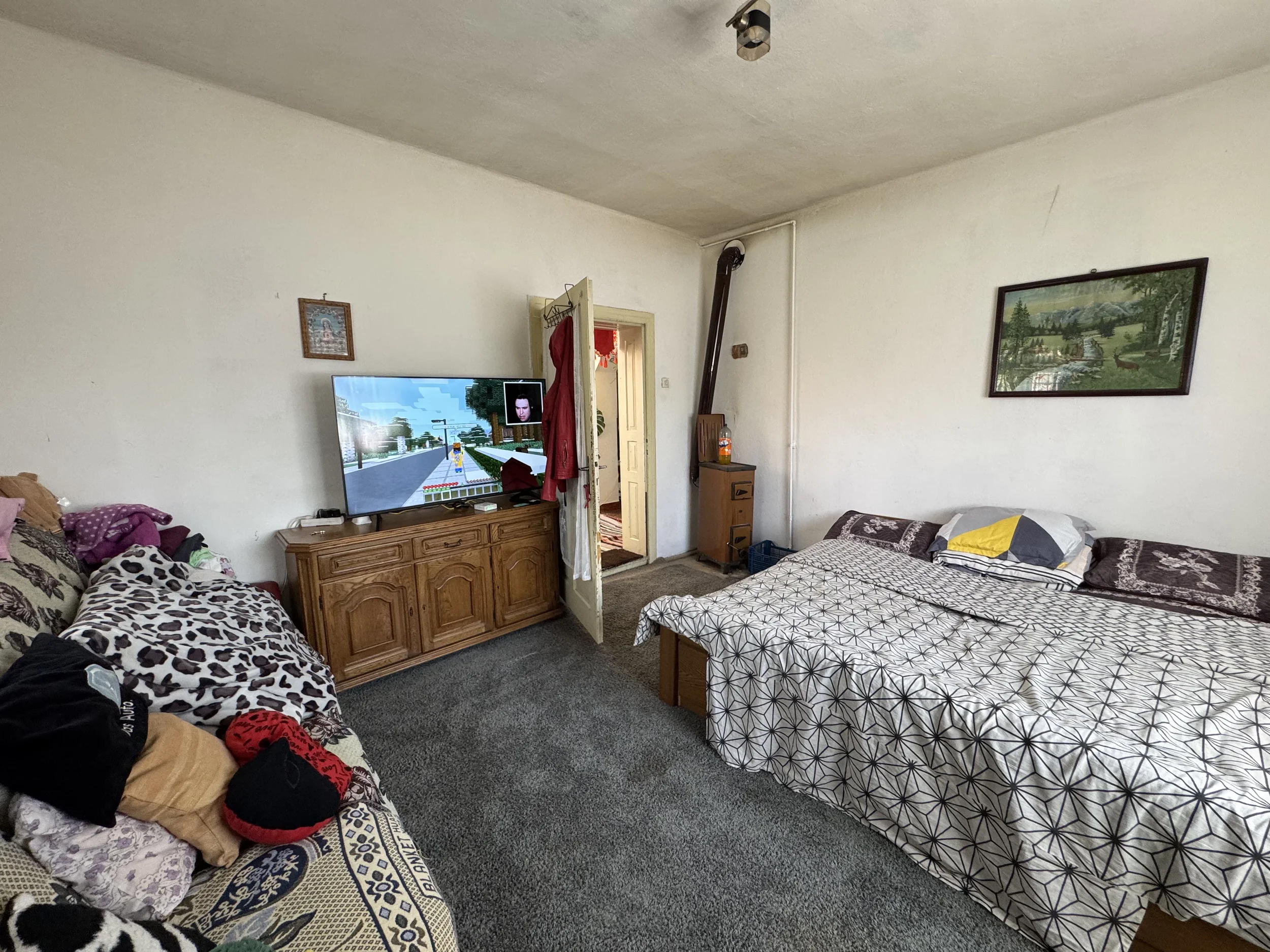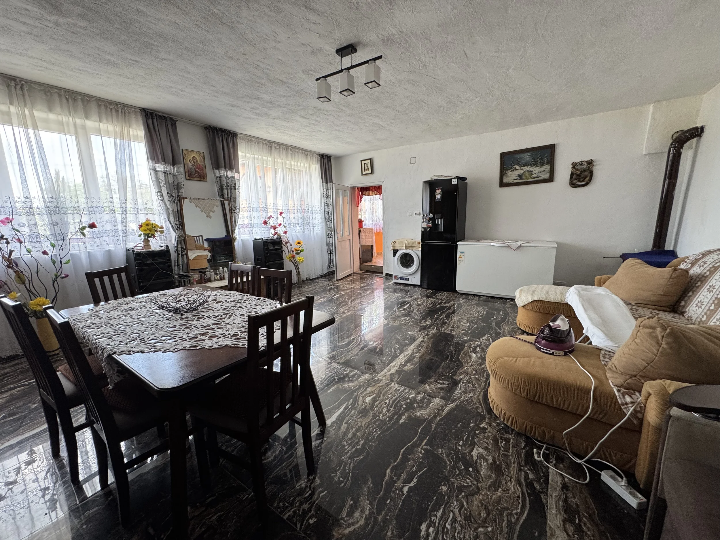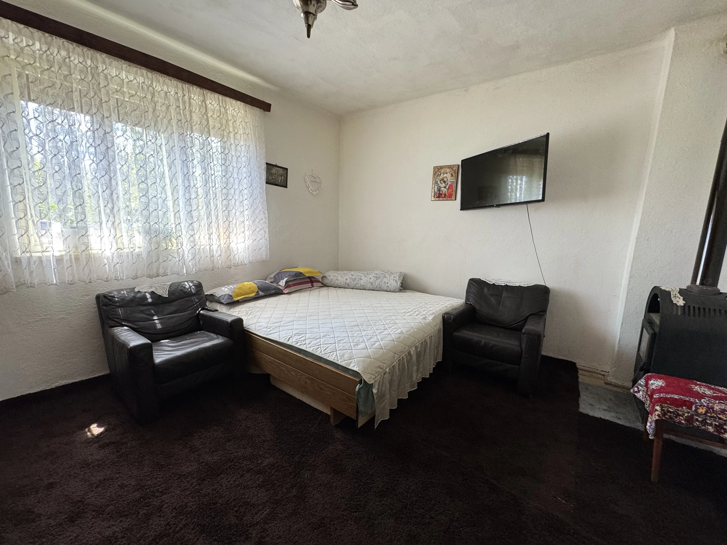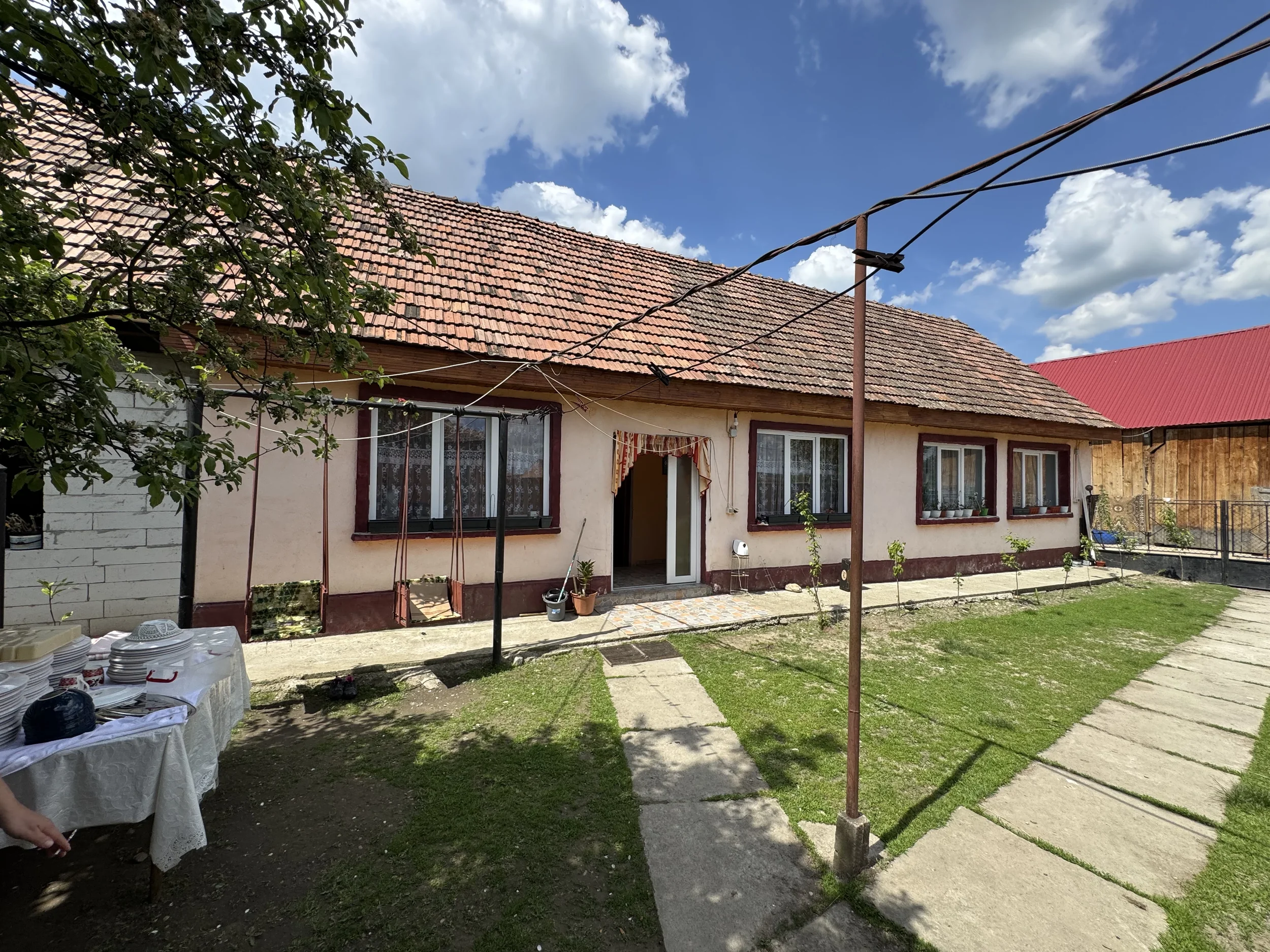 Casa principală:2 dormitoare, Living generos, Hol + cămară, Pod mansardabil, 1 beci